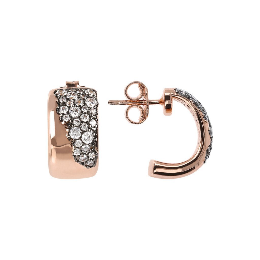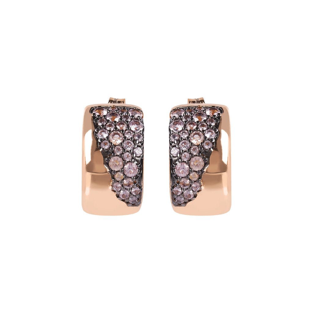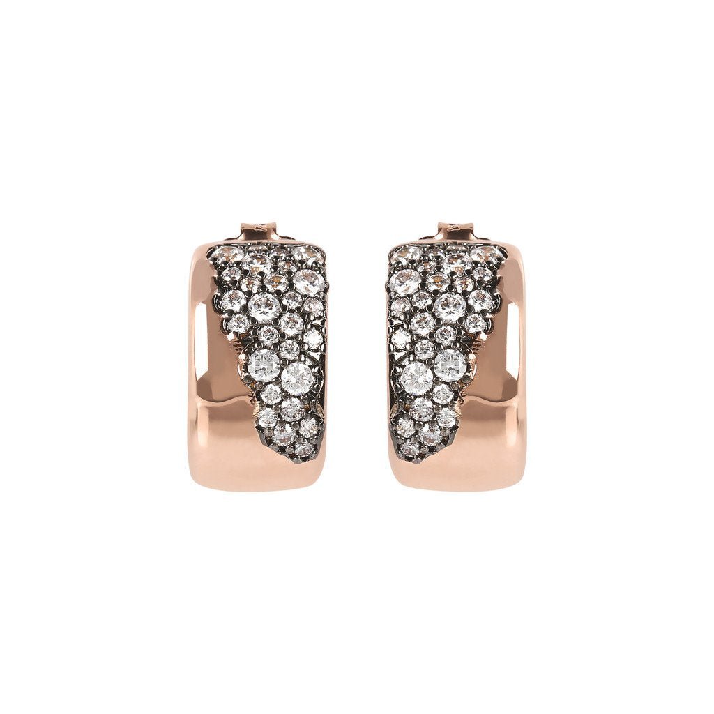 Aurora earrings are inspired by classic forms revisited in a contemporary key. This jewel, enriched with pave of different carefully selected stones, brings out the nuances of the Golden Rose and the shine of an inimitable pave.