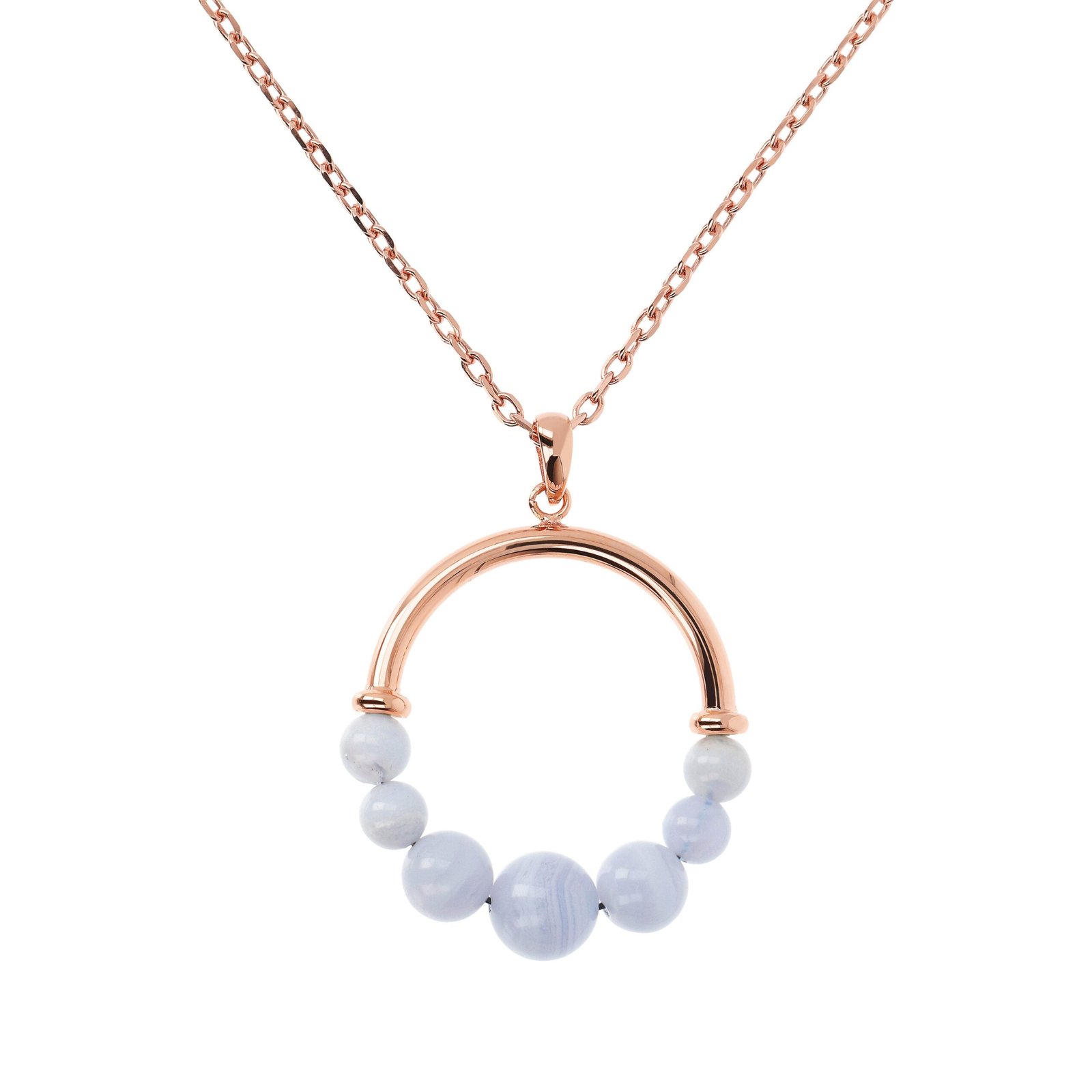 This circle pendant necklace incorporates natural blue or pink stones alternating with 18k rose gold plated elements. A triumph of colours and shades to embellish your every special occasion. Match it with matching earrings or other jewellery from the Variegata collection.