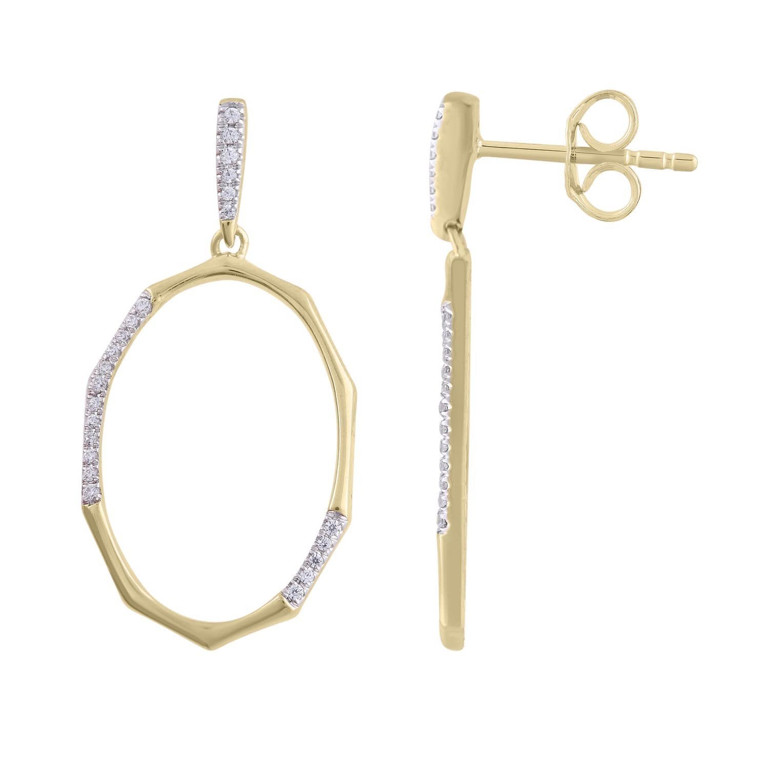 Simply Stunning, this pair of diamond stud earrings in yellow gold are made up of 46 diamonds, a total diamond weight of 0.10 carats which create a beautiful drop earring.