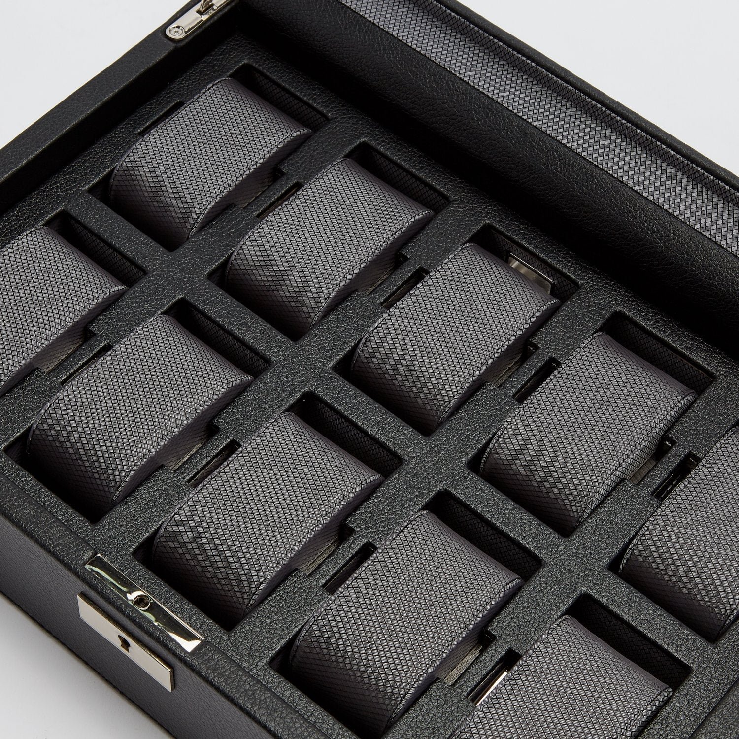 Rule over your collection with authority with a timeless Viceroy 10-piece watch box. A modern classic that exudes an understated elegance, the Viceroy includes a smooth pebble exterior, silver textured silk lining, locking glass cover.